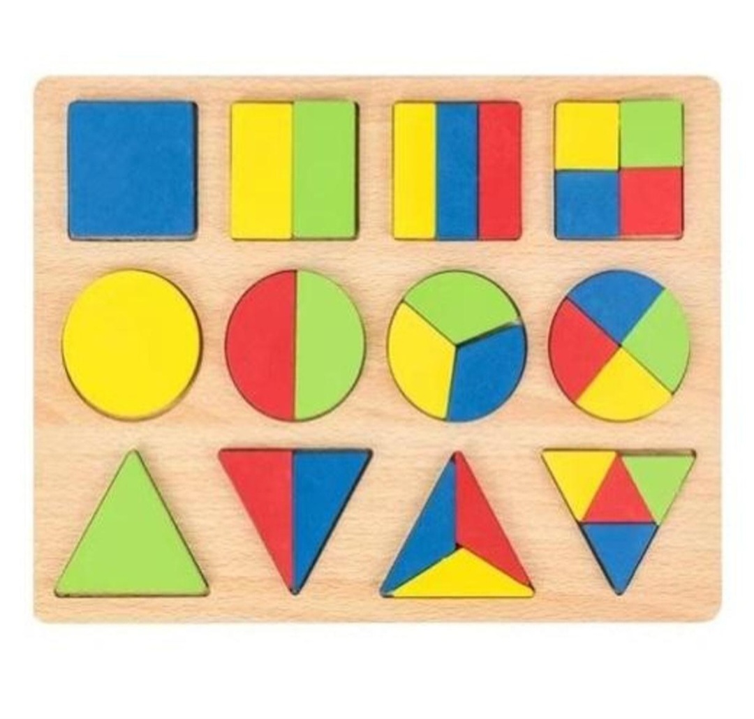 Drveni set sadrži 12 geometrijskih oblika u različitim bojama. Pomaže djeci da razvijaju prepoznavanje oblika, boja i finu motoriku. Savršeno za kreativnu i edukativnu igru.