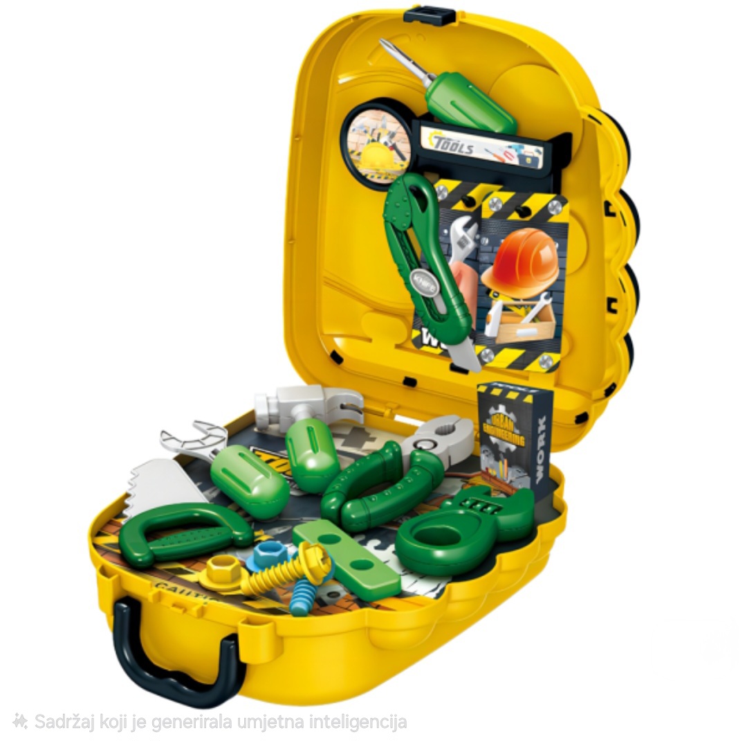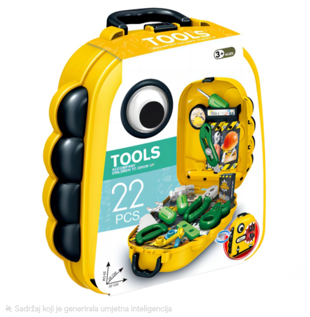 Ovaj set sadrži 22 komada alata za igru. Dizajniran je za djecu stariju od 3 godine. Pakiranje je u obliku prijenosnog kućišta s ručkom i ukrasnim okom.