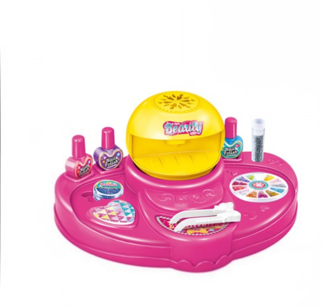 Set za uređivanje noktiju sadrži u sebi 3 laka za nokte, jednu veću posudicu sa šljokicama, jednu manju posudicu sa šljokicama, plastičnu pincetu za stavljanje naljepnica na nokte, jedan veći set sa raznim ukrasima za nokte i sušilom za nokte koji radi na baterije. Dimenzija proizvoda je 26 x 20 x 20 cm. Posebno je važno naglasiti da lak za nokte nije pravi, već je siguran za igru i djevojčice jer se lako može skinuti pod vodom.